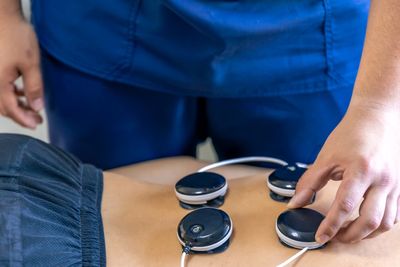During this chiropractic therapy, electrodes are placed on the skin that send light electrical pulses to different areas of the body with the purpose of reducing inflammation, curtailing muscle spasms and relieving back pain.